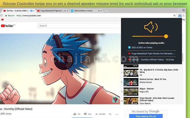 您可以单独更改每个选项卡的音量,因此您永远不会得到我们讨厌的声音混音,并根据您的需要控制音量。
