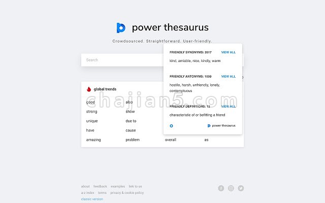 Power Thesaurus 是一个方便查找同义词的Chrome扩展,安装设置后,鼠标选词后即刻显示浮动窗口,本插件是提高词汇量英语学习的好助手。