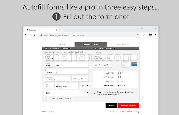 Autofill 是一个只需要前期简单配置,便可以辅助填写表单的Chrome插件。Autofill 插件下载版本:9.5.6上次更新日期:2019年9月13日点击进入下载页相关文章Formplus 具备多功能的在线表单生成器Excel Online 在线创建、编辑和共享 Excel 电子表格Google Docs Offline 离线编辑、新建和查看文档 表格 PPTAnki-leo - LinguaLeo dictionary export (LinguaLeo字典导出到表格文件)石墨表格剪切板-可以访问系统剪切板的内容Copytables帮助你制作富文本表格Export for Trello 沟通协作工具Trello导出Excel xlsx文件的Chrome浏览器插件微软Office Chrome扩展方便在浏览器中查看、编辑和创建文档Google文档、表格及幻灯片的Office编辑扩展程序Live Screen Recorder 录屏插件 录制电脑桌面和浏览器标签页
